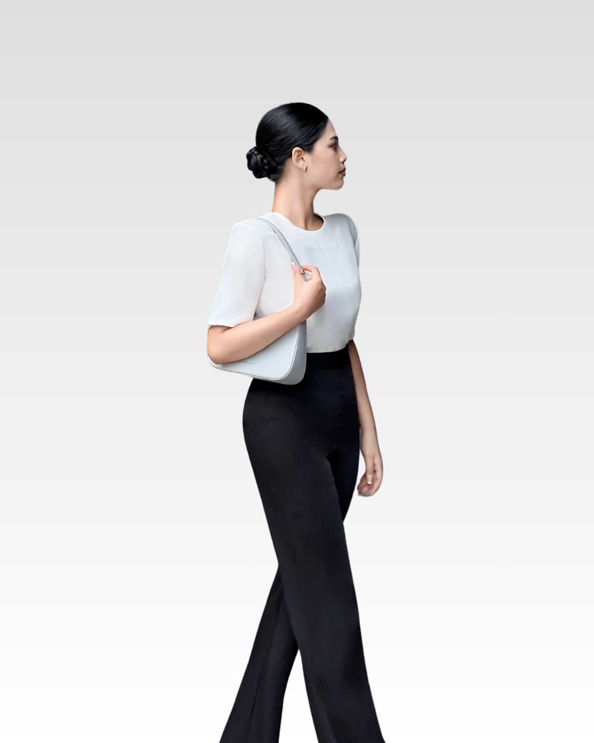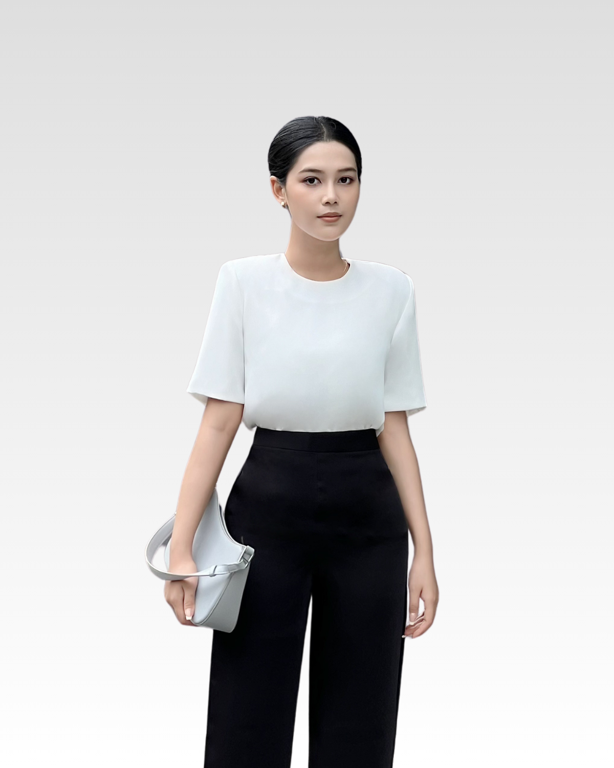Quần dài ống suông loe nhẹ cúc kiểu tôn dáng — sản phẩm được phối trong look này