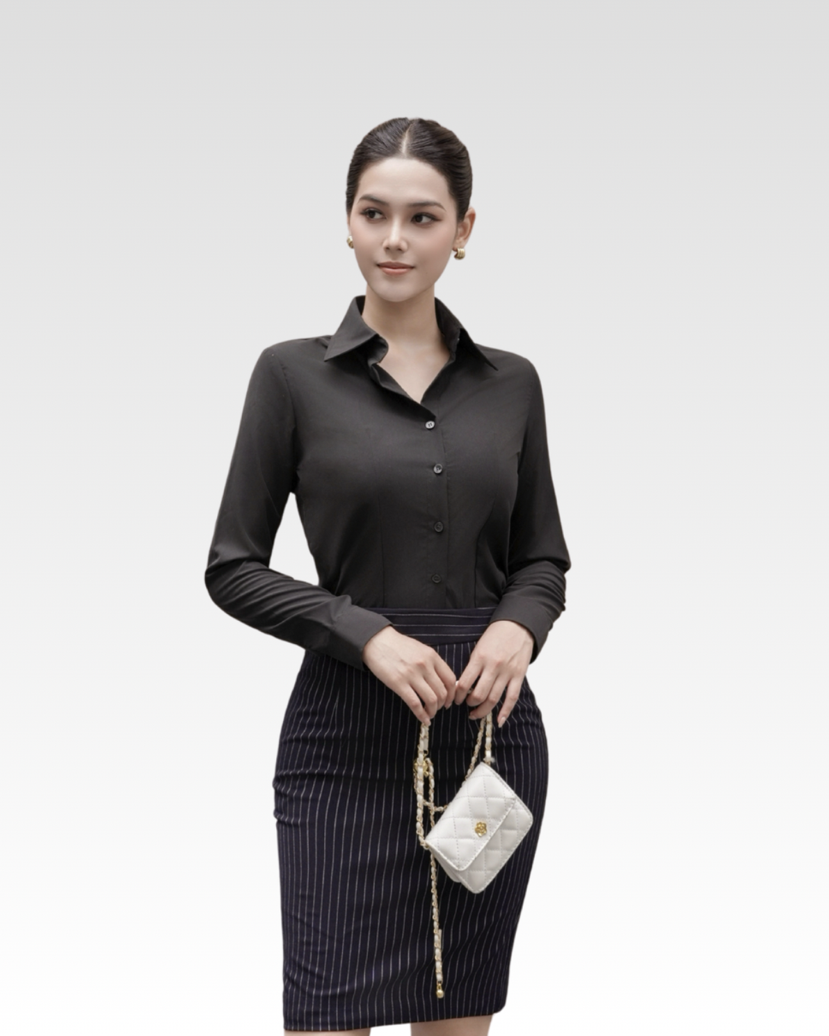 Quần tây âu kẻ sọc ống suông loe nhẹ — sản phẩm được phối trong look này