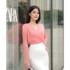 Áo sơ mi đắp chéo vải voan tơ dập họa tiết chấm bi 2 lớp [AS020]