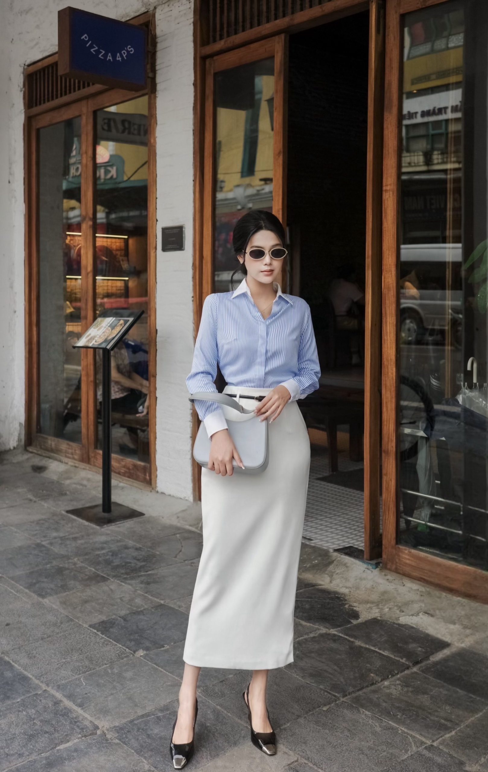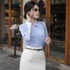 ◾️ Tên sản phẩm 1: Áo sơ mi Kate sọc phối cổ & bo tay trắng