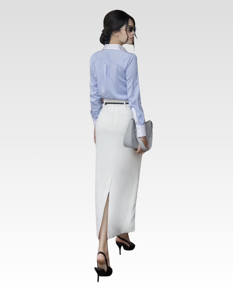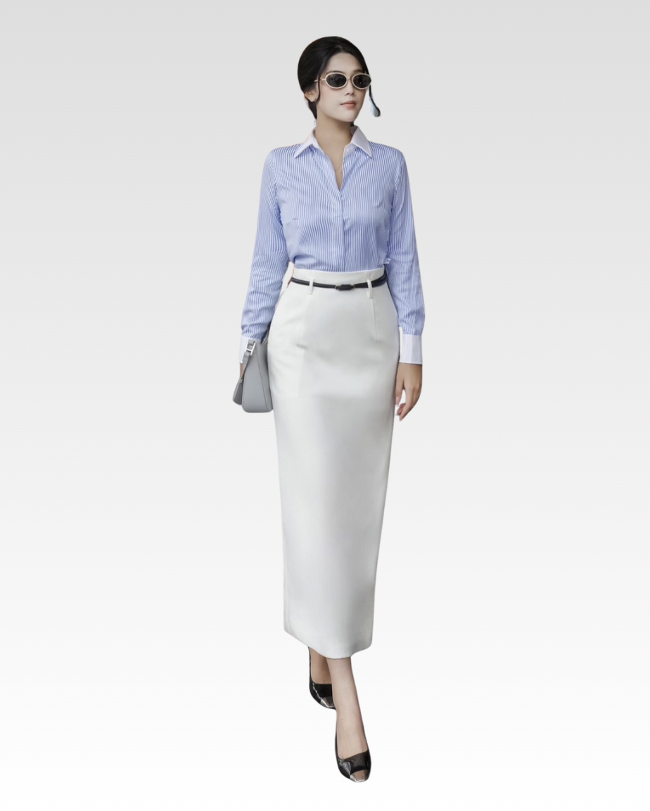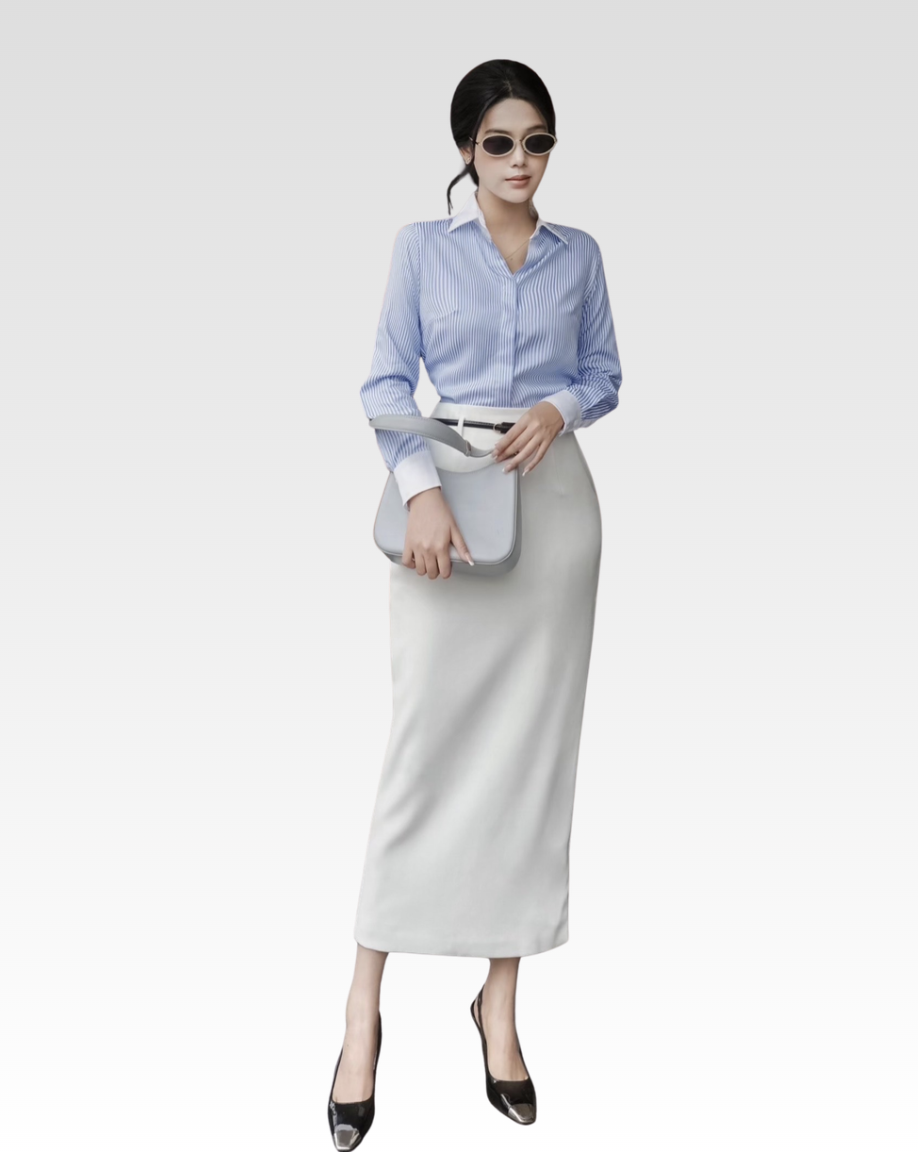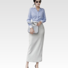 Chân váy midi dáng dài xẻ sau (2 lớp) — sản phẩm được phối trong look này