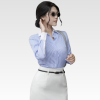 Áo sơ mi kẻ sọc xanh phối cổ áo và bo tay trắng