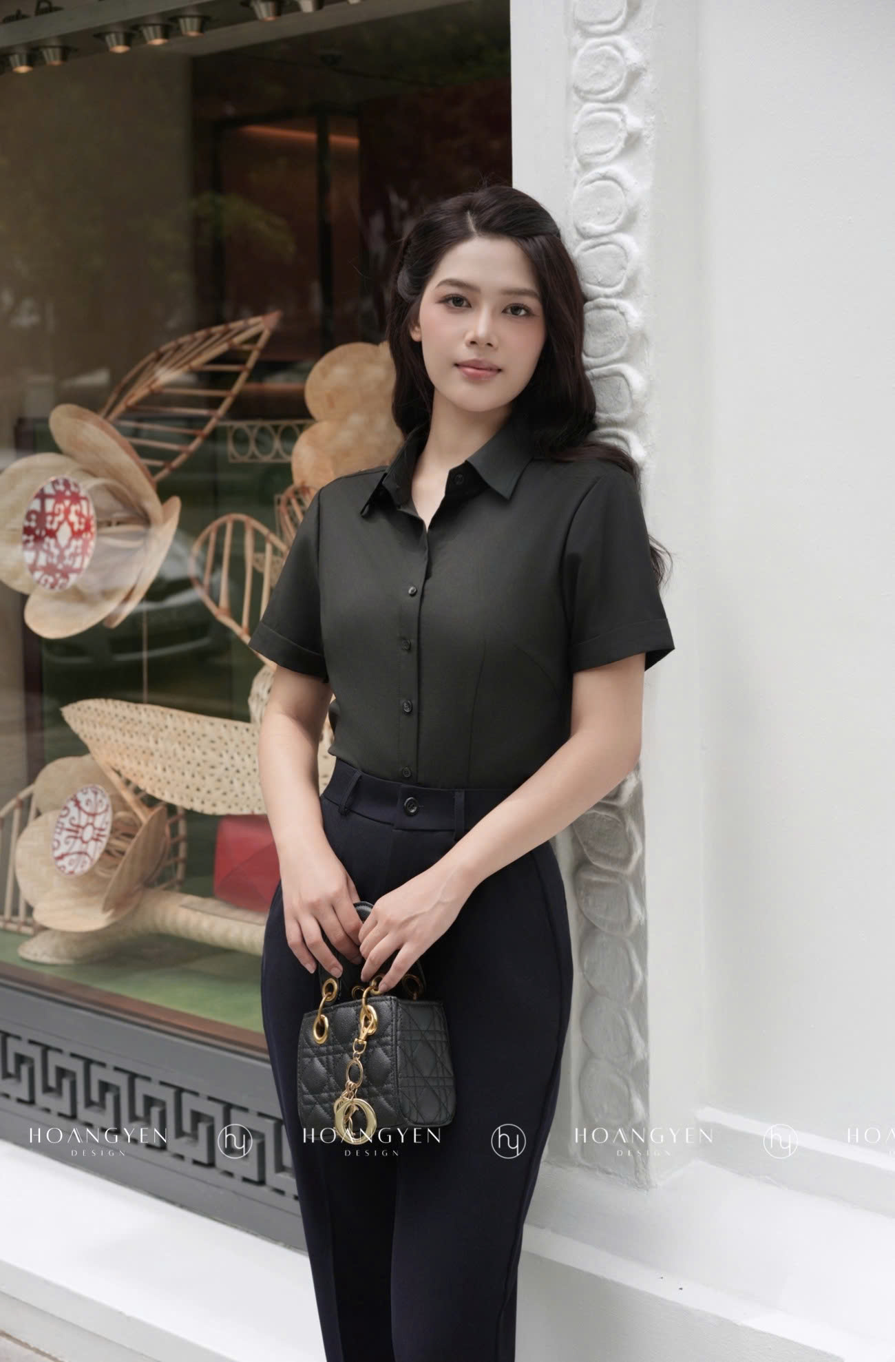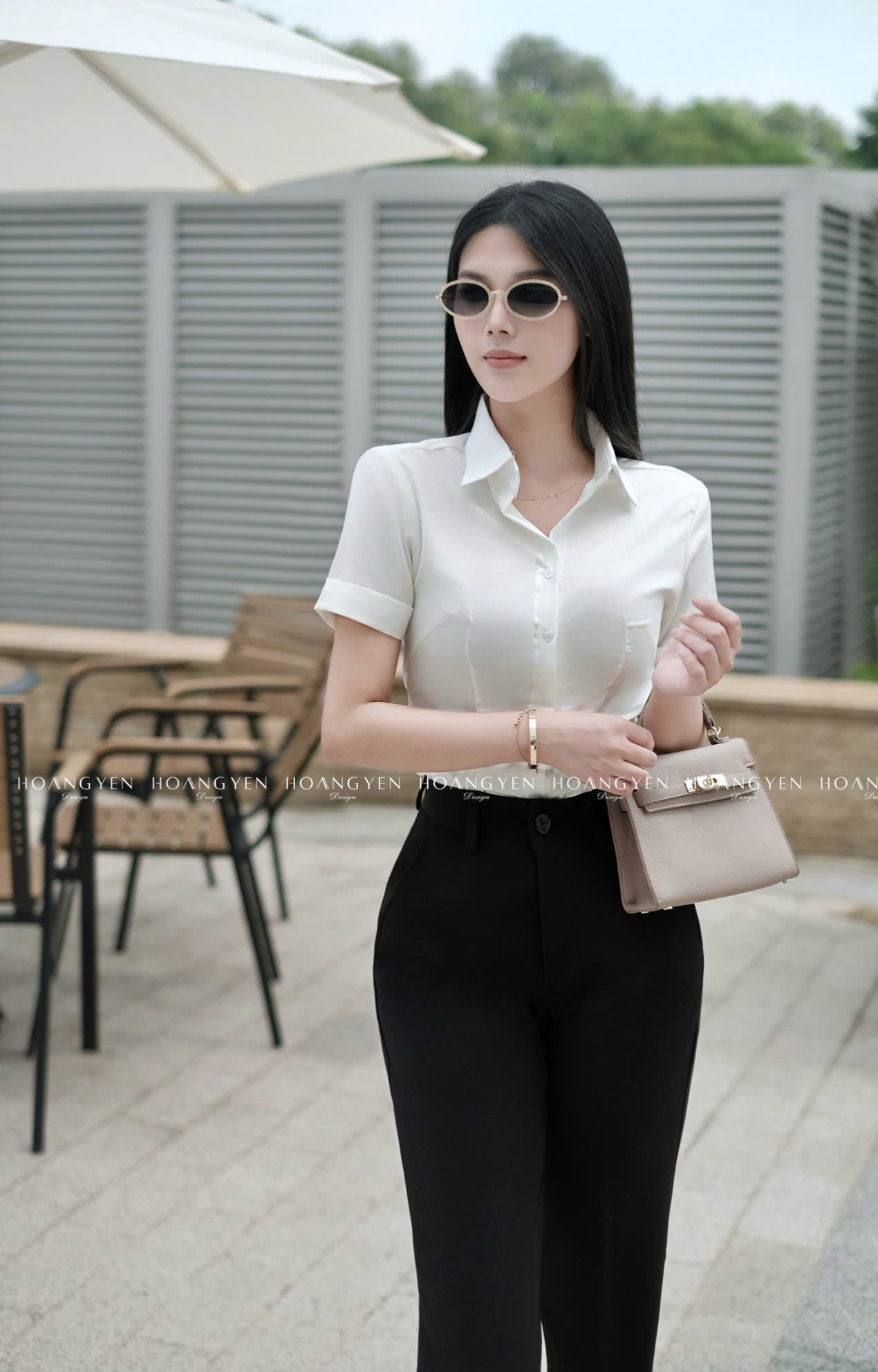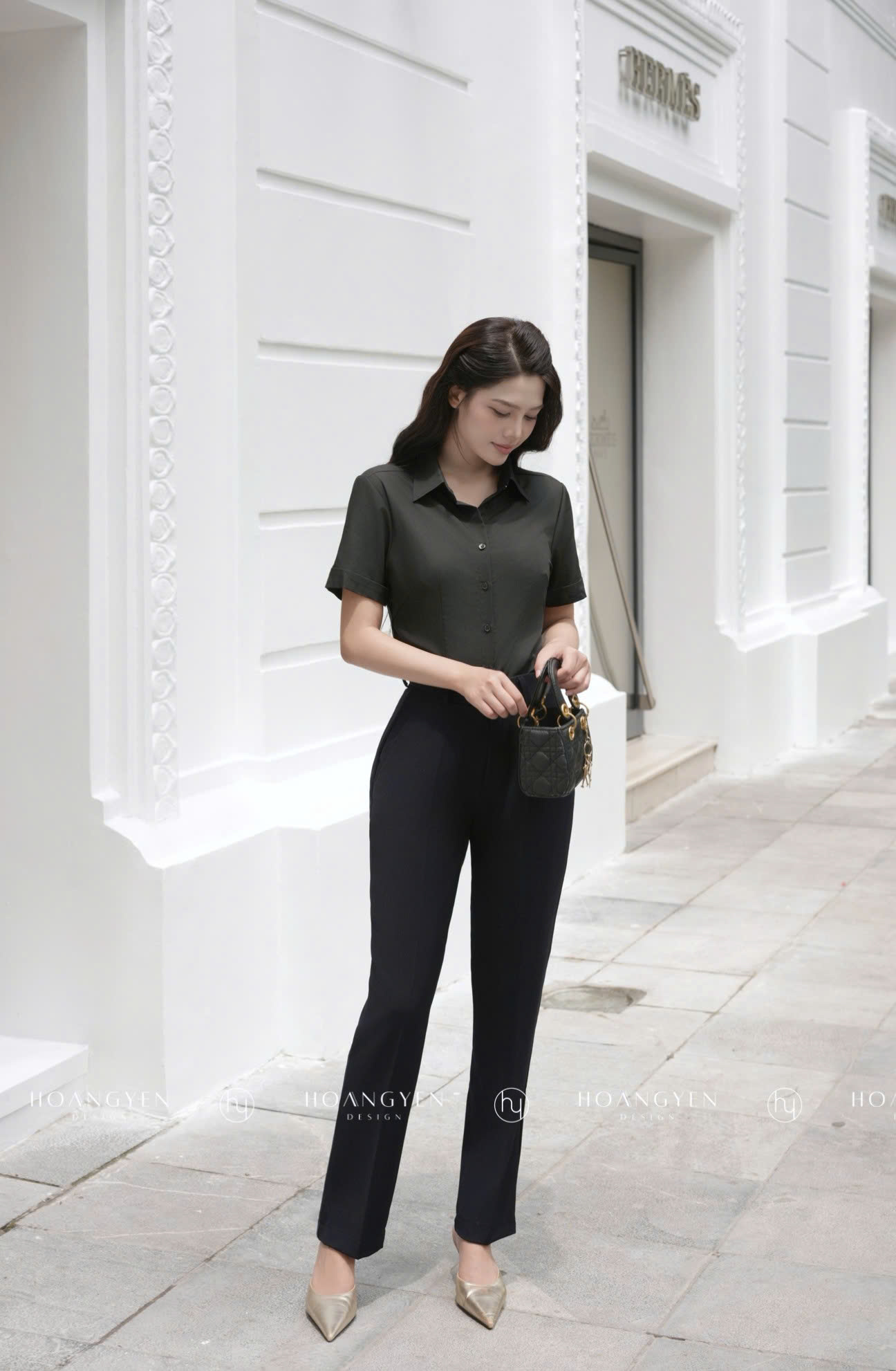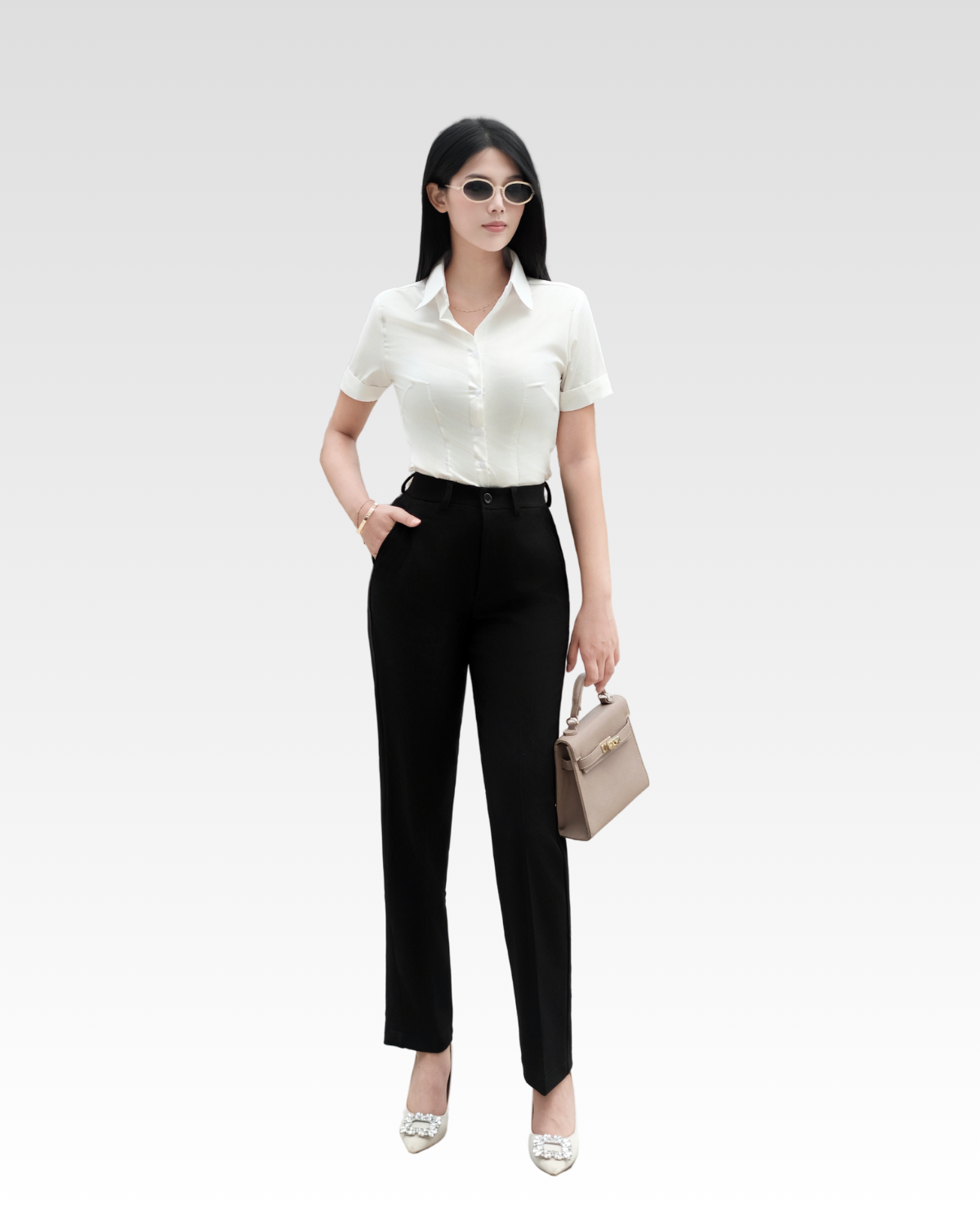 Quần tây âu ống đứng basic lưng cao — sản phẩm được phối trong look này