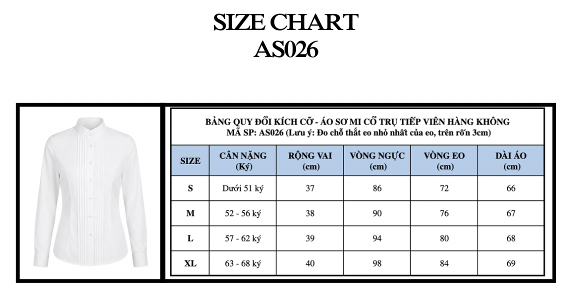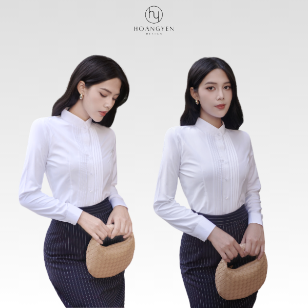 Áo sơ mi tiếp viên hàng không cổ trụ phom ôm [AS026]