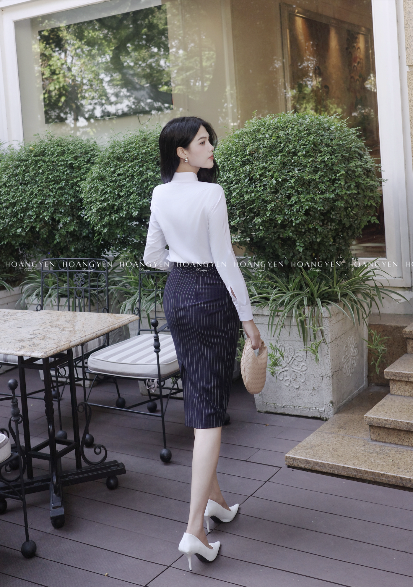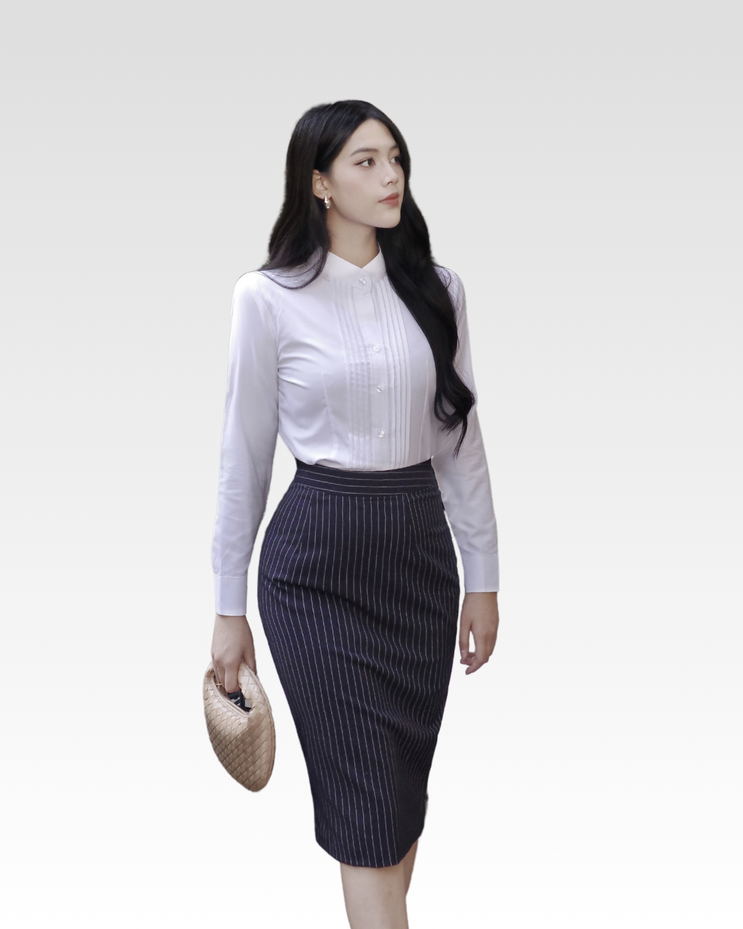 Áo sơ mi tiếp viên hàng không cổ trụ phom ôm
