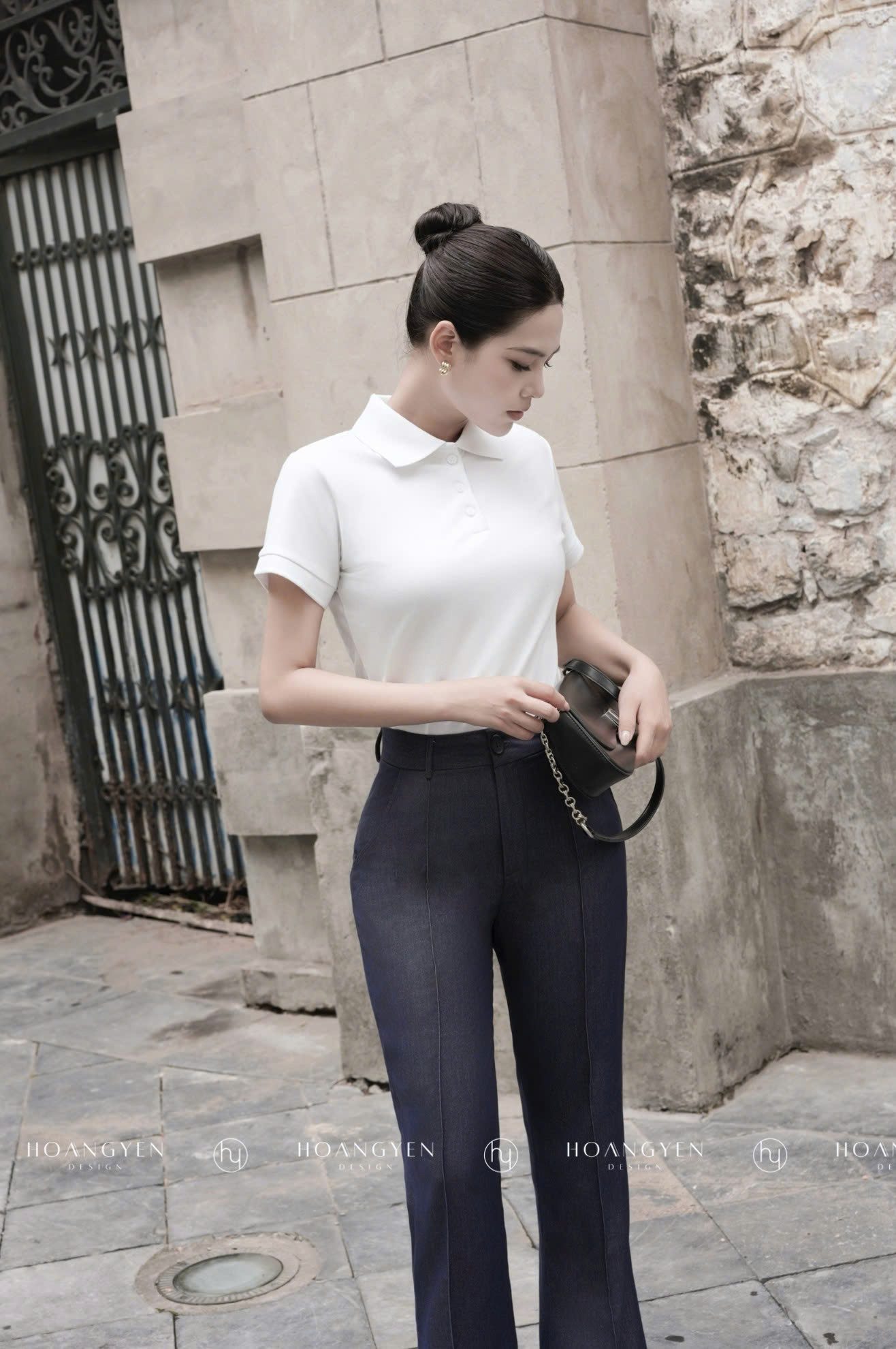 Quần tây âu vải jeans thun lụa Hàn Quốc — sản phẩm được phối trong look này