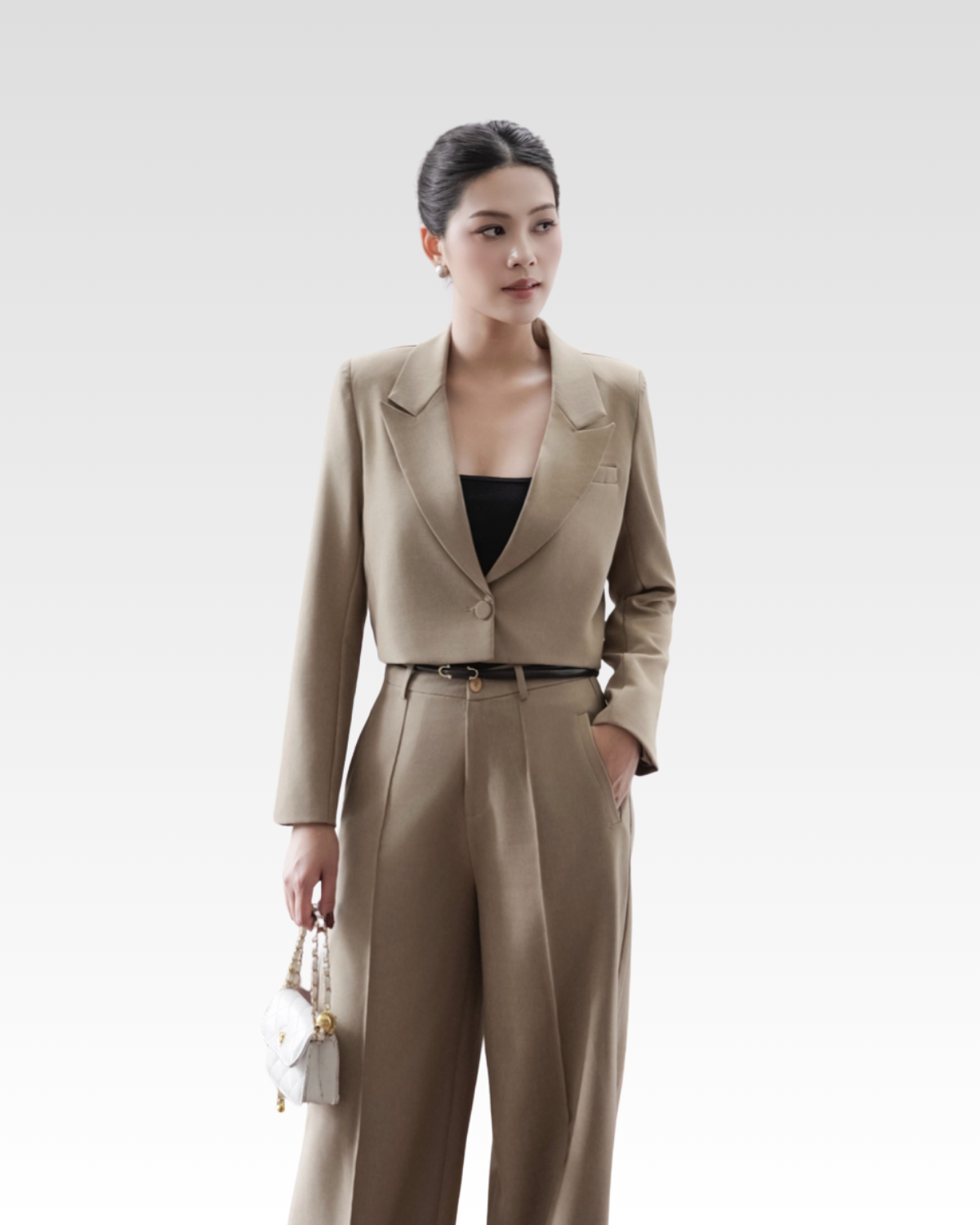 Quần tây âu ống suông 2 túi xéo — sản phẩm được phối trong look này
