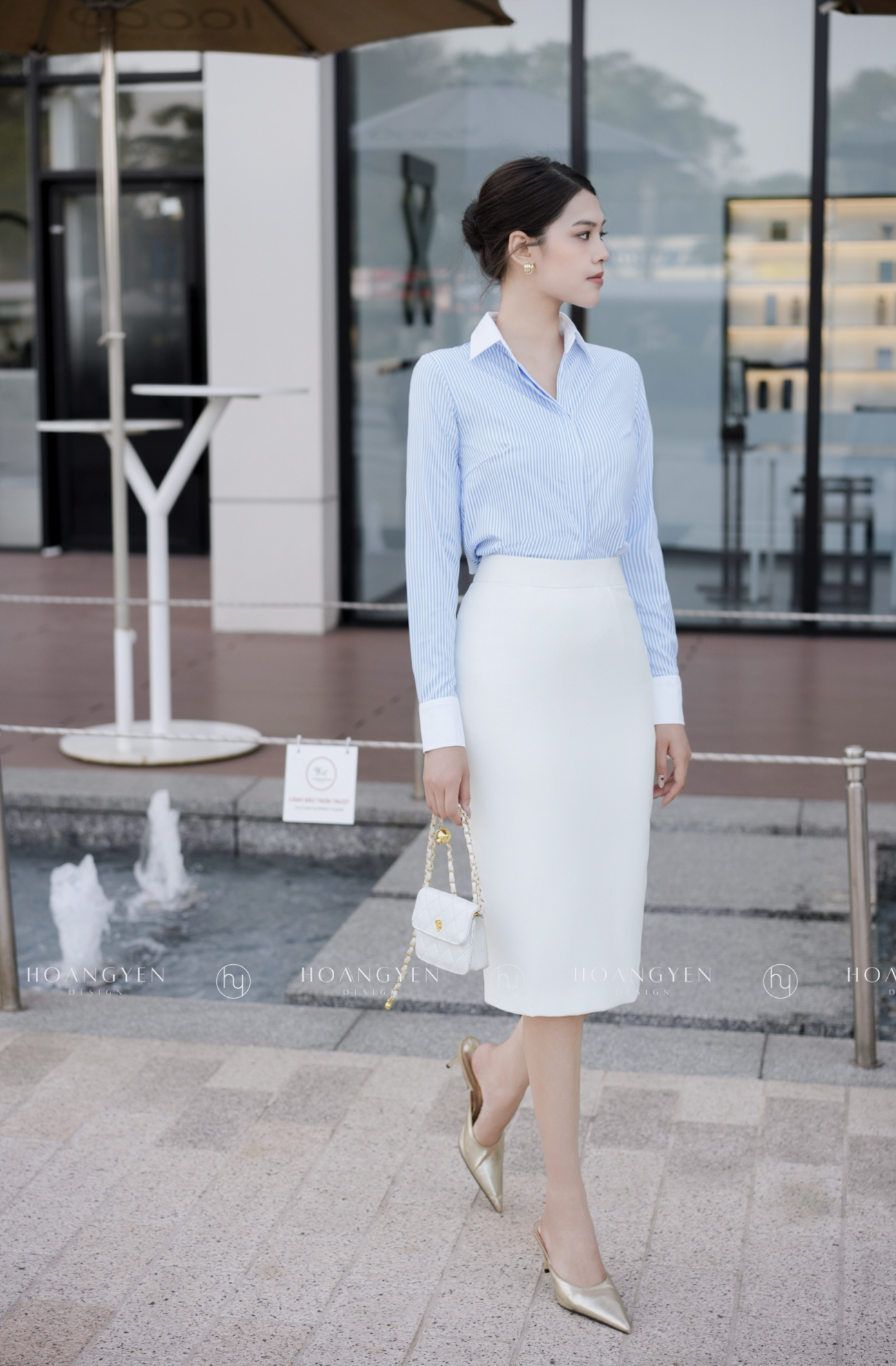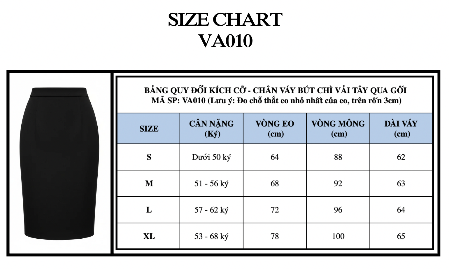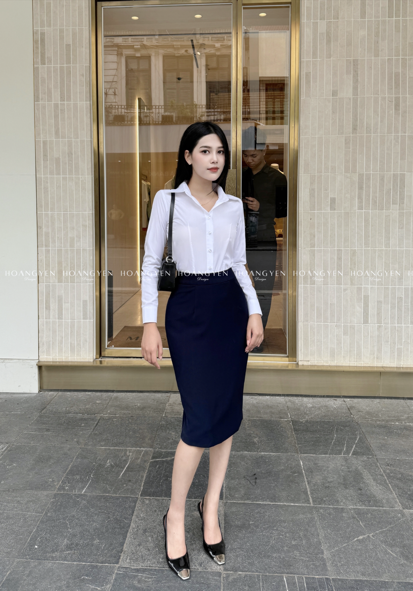 Chân váy bút chì vải Tây 2 lớp xẻ sau dài qua gối