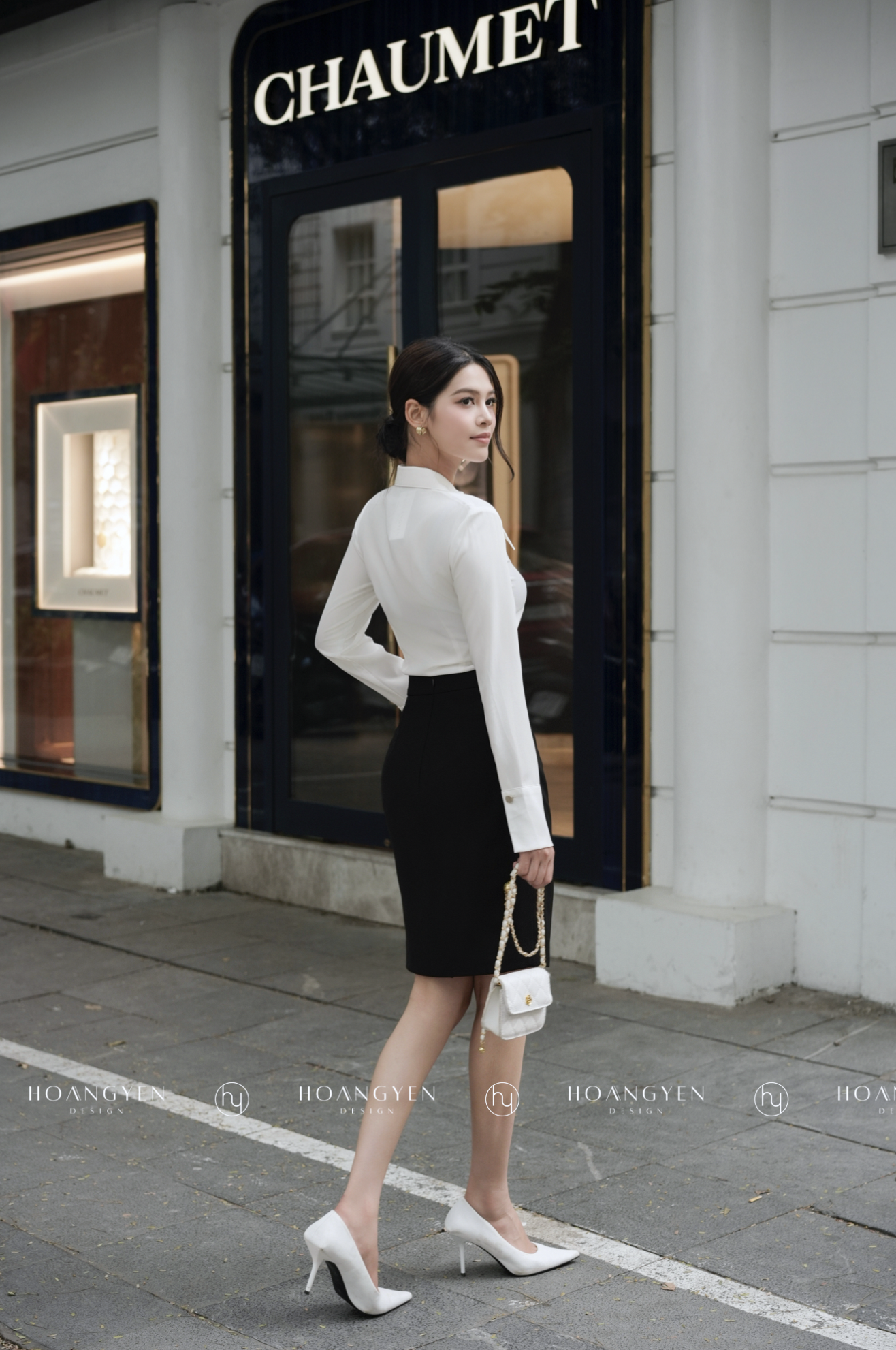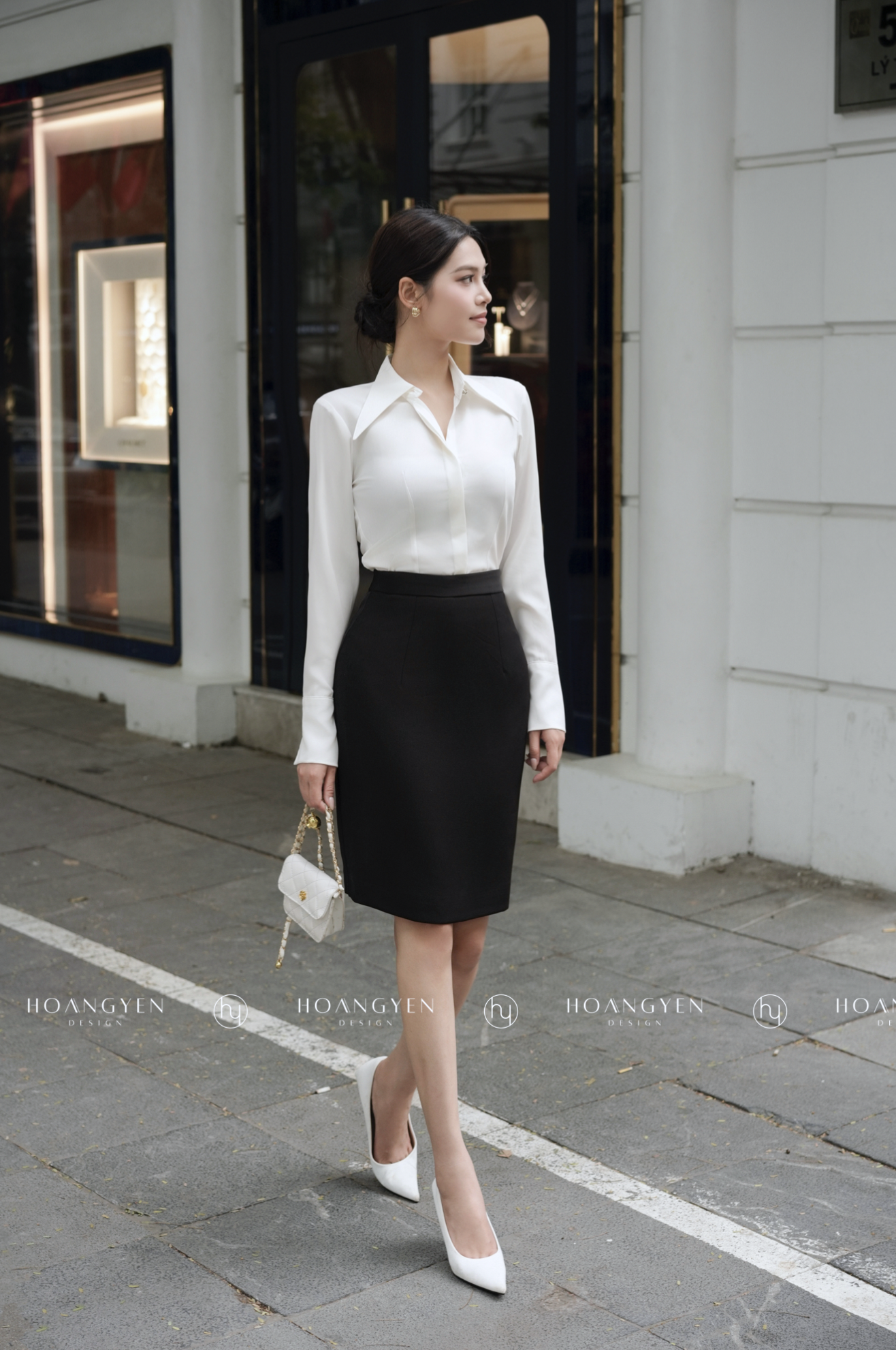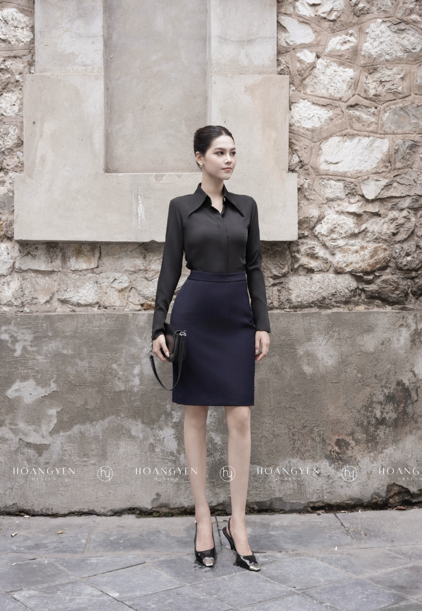 Chân váy bút chì vải tây công sở dài trên gối 2 lớp xẻ sau