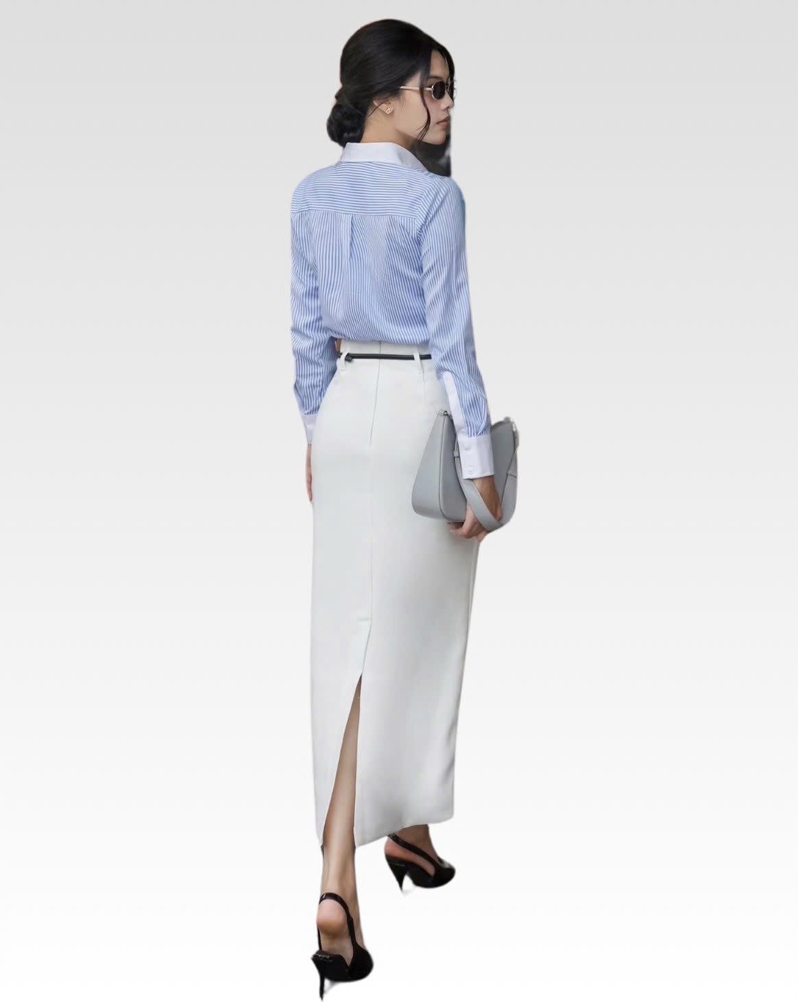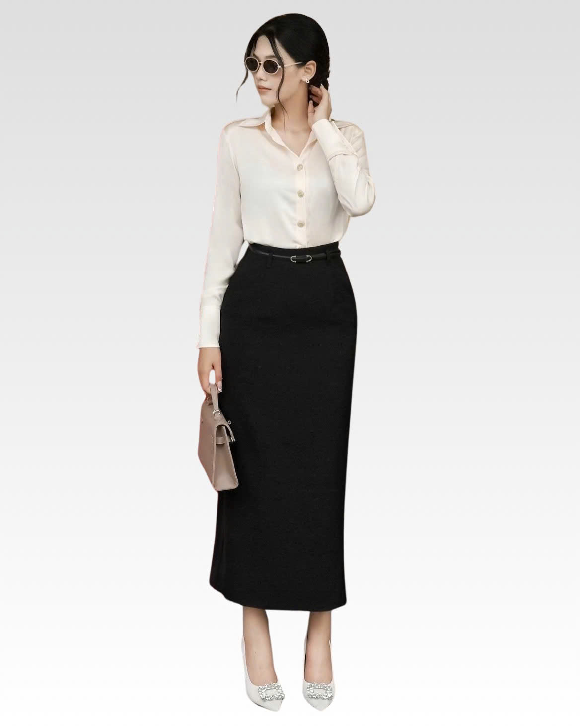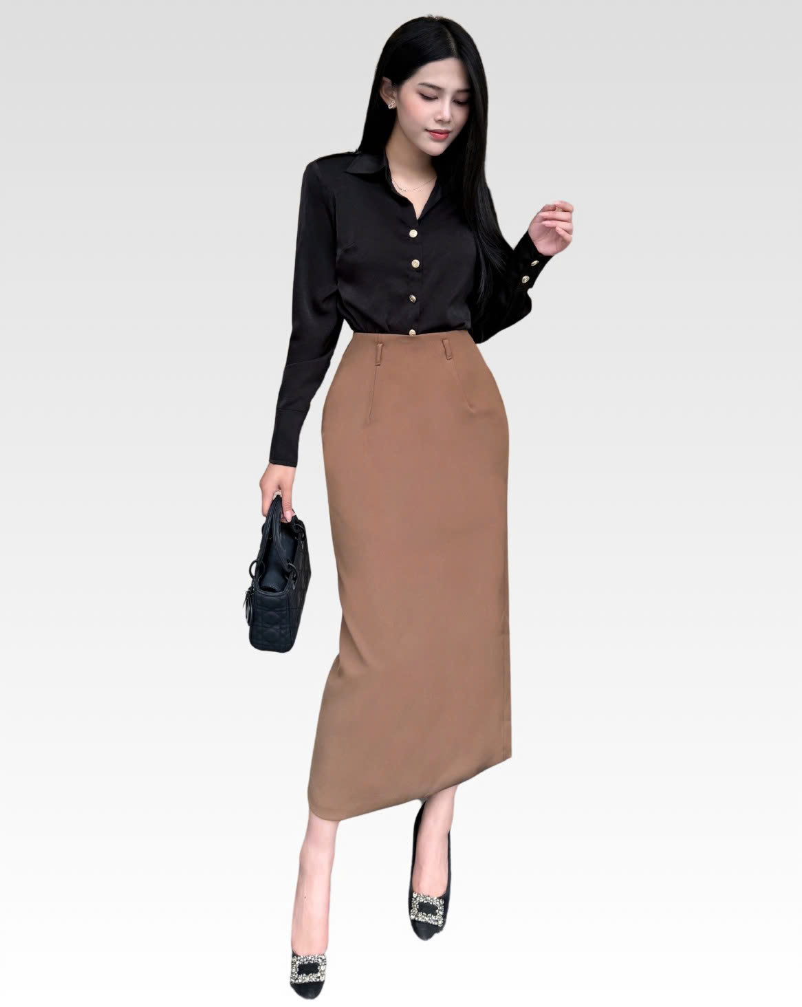 Chân váy midi dáng dài xẻ sau 2 lớp 2 túi hông (không kèm belt)