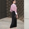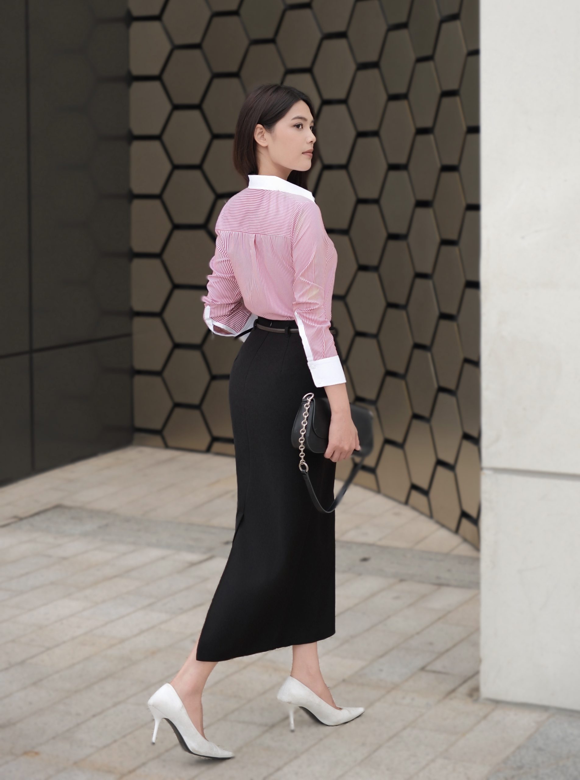 Áo sơ mi kẻ sọc phối cổ và bo tay trắng siêu hot — sản phẩm được phối trong look này