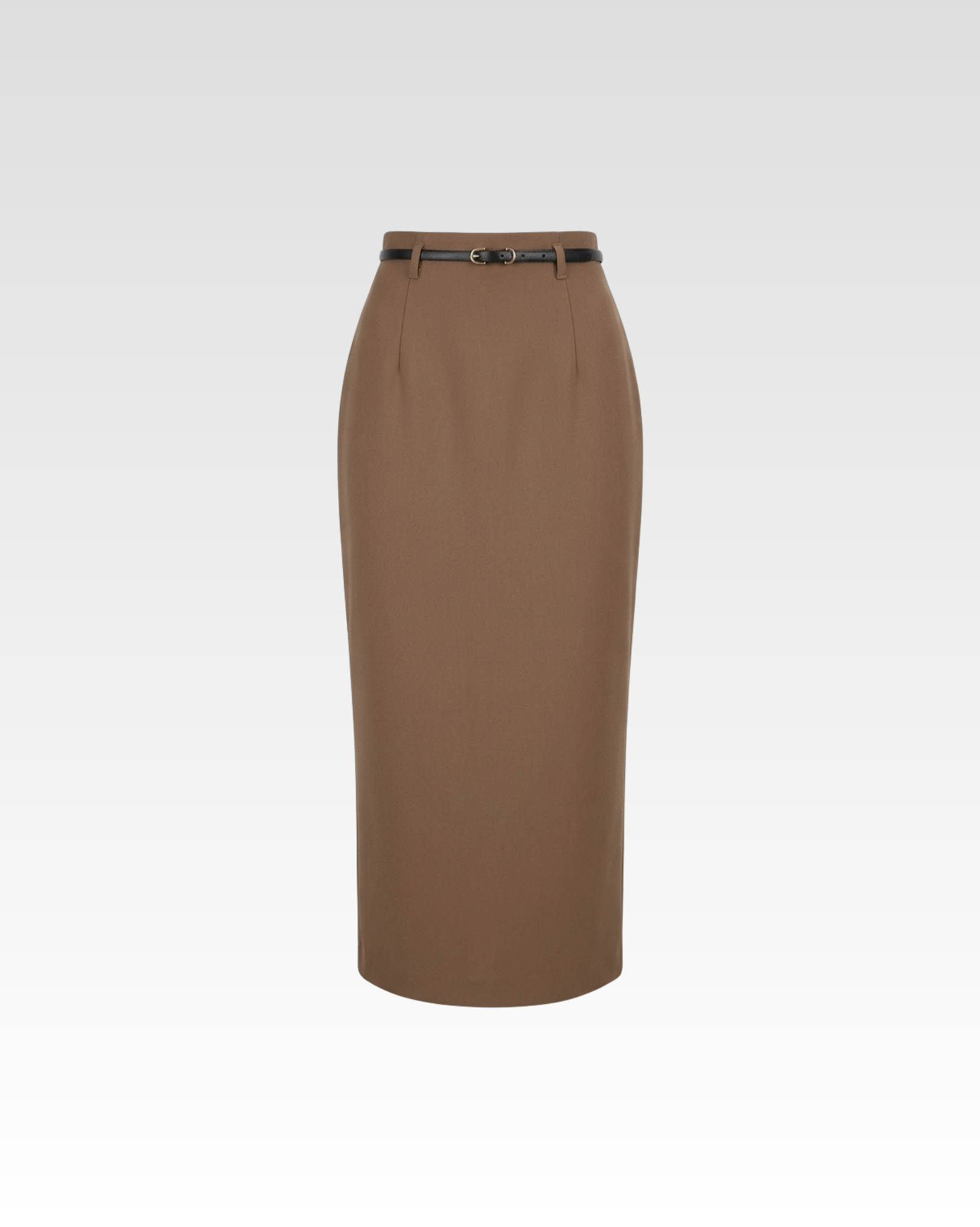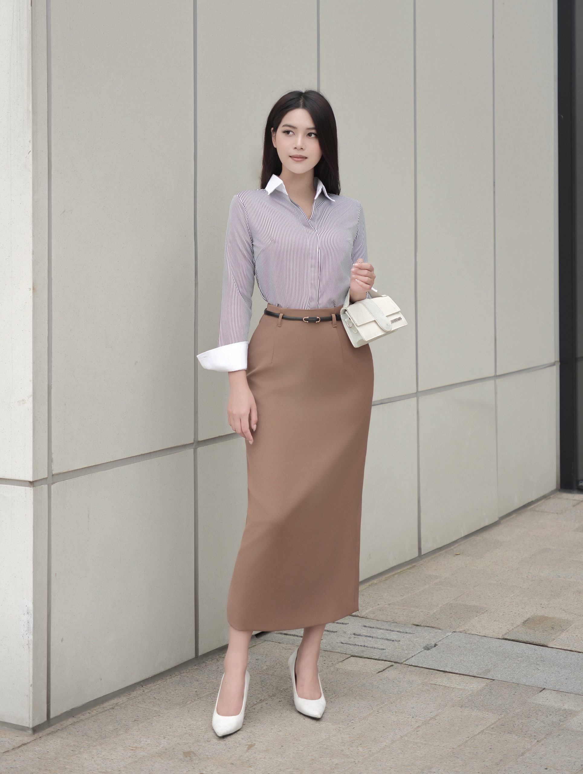 Chân váy midi dáng dài xẻ sau 2 lớp 2 túi hông (không kèm belt) [VA012]
