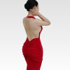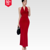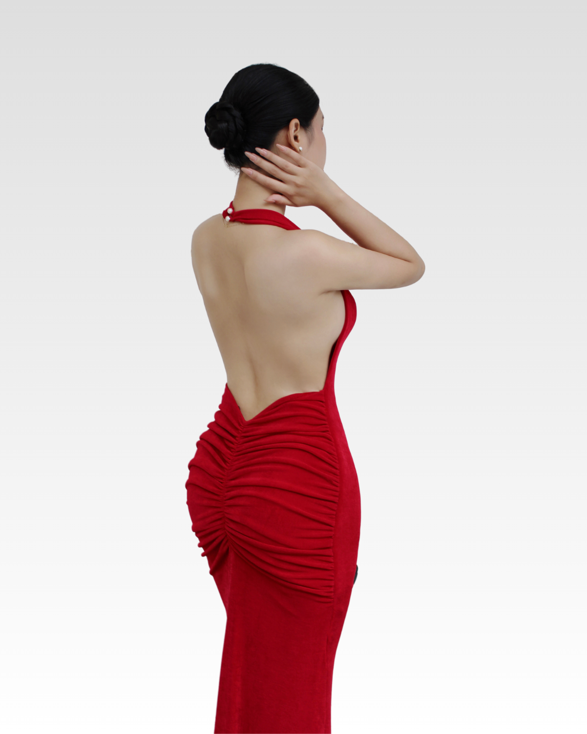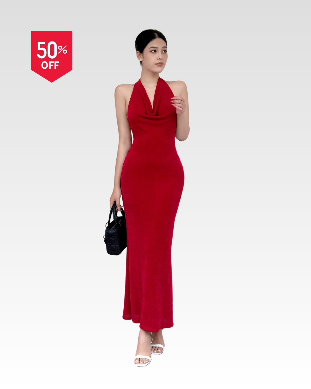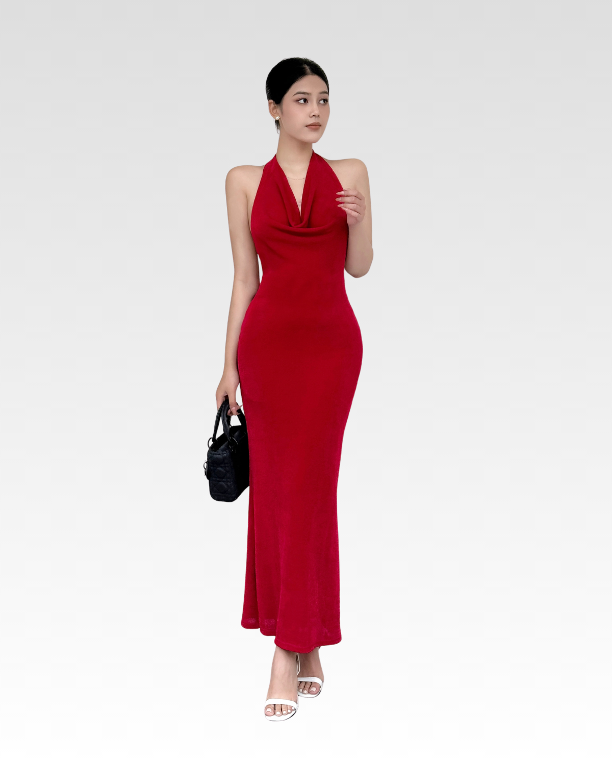 Đầm cổ đổ 2 lớp hở lưng dáng dài [DA002]