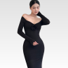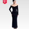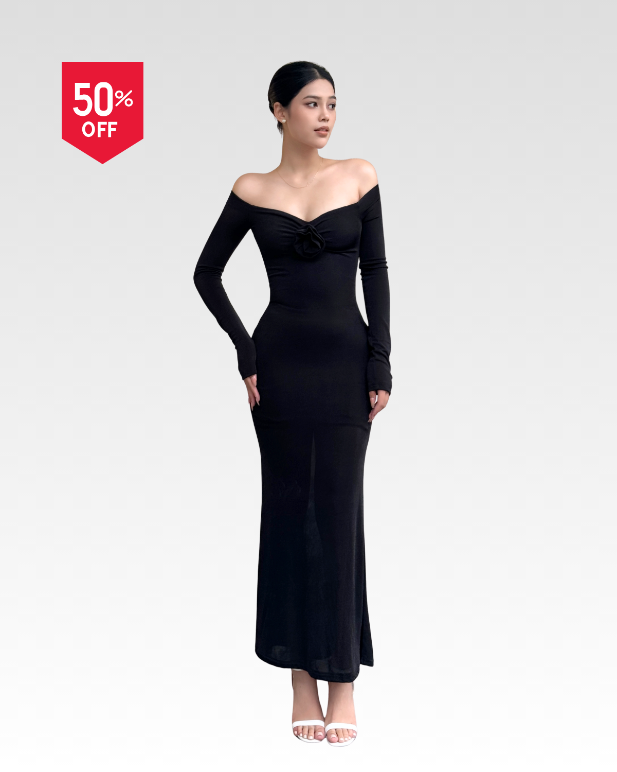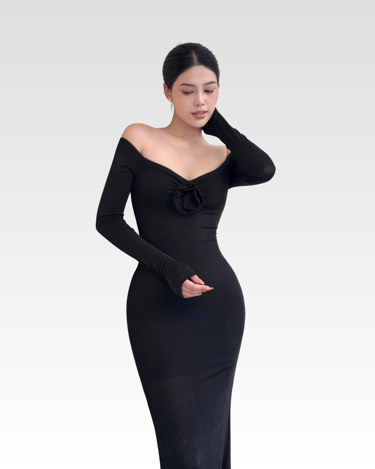 Đầm thun nhung bẹt vai hoa hồng dáng dài 2 lớp [DA004]