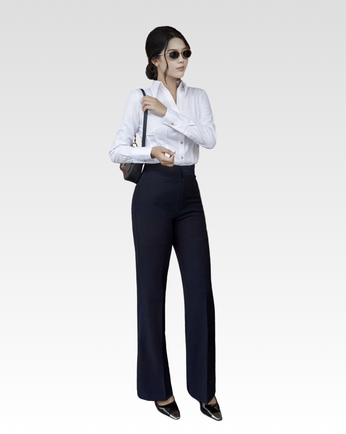 Quần tây âu ống suông loe ủi ly dáng dài phủ gót